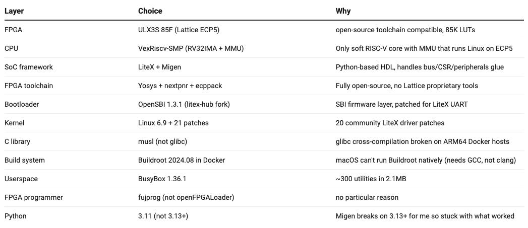 I’m designing a hardware ML accelerator for a RISC-V FPGA SoC, targeting the ULX3S board (Lattice ECP5). The SoC already boots Linux 6.9 and does matrix multiplication in combinatorial logic at zero-cycle latency.